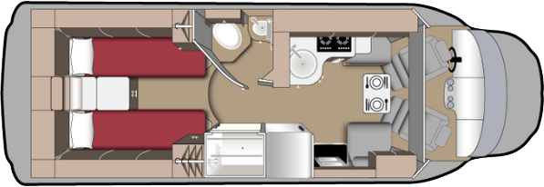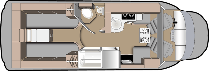 Ein sehr komfortables Fahrzeug mit permaneten Betten (2 Einerbetten oder 1 Kingsize Bett) im hinteren Teil des Fahrzeuges, Dusche, separates WC und gute Kochmöglichkeiten. Im Aussenbereich verfügt das Fahrzeuge seitleich eine Sonnenstore